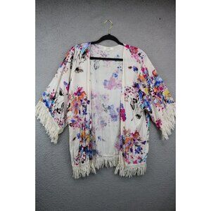Umgee Floral Overlay Open Front-Size Small-Fringed-BOHO-Oversized