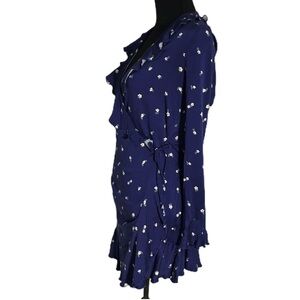 Urban Outfitters | Blue Floral Ruffle Wrap Dress size Medium Navy blue with floral wrap dress in good condition