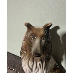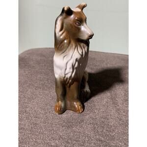 Signed BRASIL Sitting Collie Dog Figure, Painted Porcelain, 7"