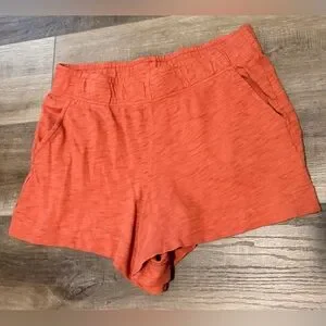 Chic and versatile rust shorts. Ideal for workouts or casual wear. Features a comfortable fit.