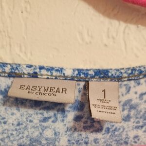 Easywear By Chicos Blue and Brown Pullover 3/4 Sleeve Women's Top Size 1 P2P 20