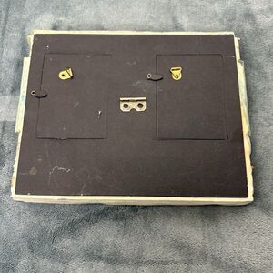 The Vintage Seaside Shack Double Picture Frame is a charming nautical-themed frame made of resin. With a rear-loading photo insertion type, this rectangular frame can hold two 2 x 3 inch photos. Standing at 7 inches tall and less than 10 inches long, this vintage-style frame is perfect for adding a touch of seaside nostalgia to any space. The stand is broken but the frame will sit without it