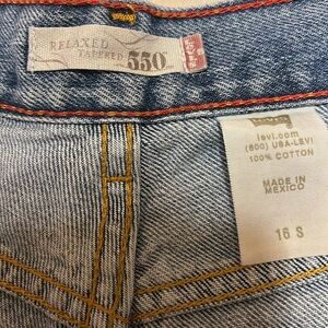 Levi's 550Relaxed Tapered 16S Blue Jeans waist 35” rise 11.5” inseam 29”