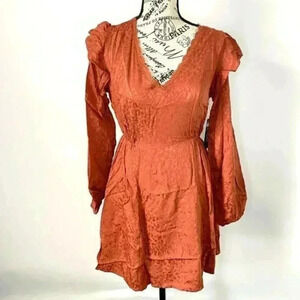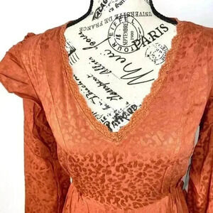 V-neck Jacquard dress detailed with leopard print and lace in the neck. Feat with long sleeves and elastic waistband
