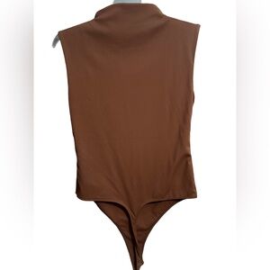 Mock neck brown sleeveless bodysuit is perfect for any occasion. Its sleek design offers a sophisticated look. Thick
