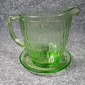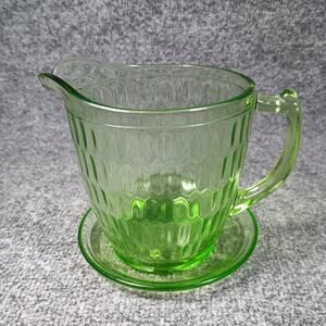 Vintage Uranium Glass Honeycomb Pitcher Green Vaseline Depression Glass Unmarked