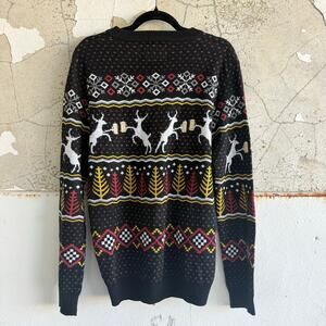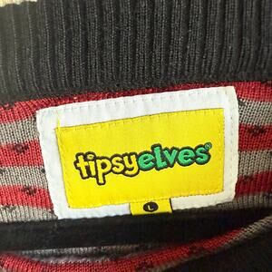 Tipsy Elves ugly Christmas sweater in black with beer-drinking reindeer, Fair Isle stripes, and that over-the-top holiday vibe the brand does best. Soft 100% acrylic knit with a classic crewneck and long sleeves. Built for parties, photos, or any night that needs a little chaos. Bright colors, clean graphic, and easy fit.