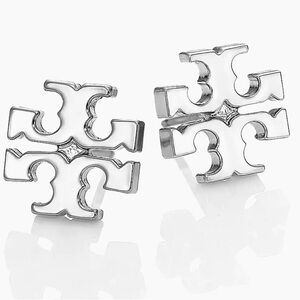 Tory Burch Silver-Tone Iconic Logo Stud Earrings