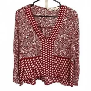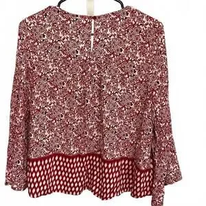 Available by Angela Fashion Red and White Floral Patterned Blouse Medium