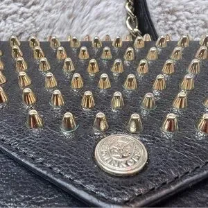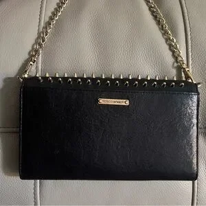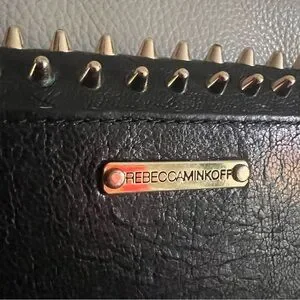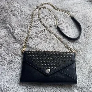 Rebecca Minkoff Crossbody Bag Studded Chain Black Leather Gold Biker Grunge Rock