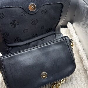 Elegant Tory Burch crossbody bag in classic black. Perfect for any occasion with its sleek design and practical size.