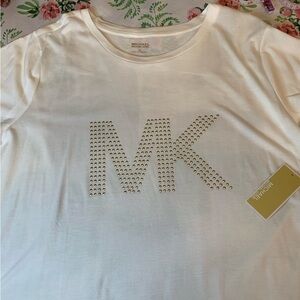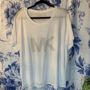 Sleek white T-shirt from Michael Kors. Ideal for any occasion. You can dress it up or wear it down this is a classic MK designer T-shirt.