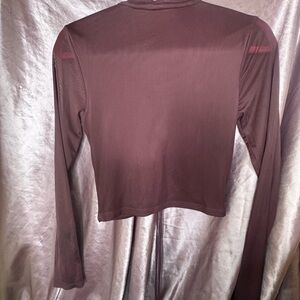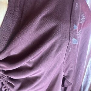 Selfie Burgundy Ruched Long Sleeve Mesh Top