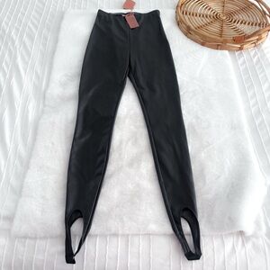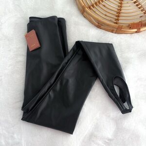 Wolford Amina Muaddi Faux Leather Leggings Stirrup Black NWT