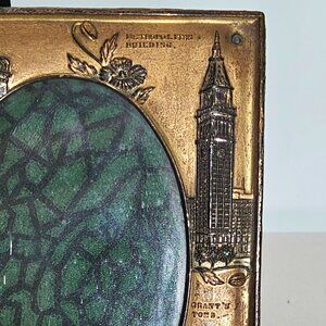 Antique 1910s New York Photo Frame 5x7 metal souviner raised relief Statue Liber