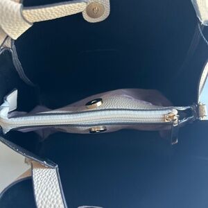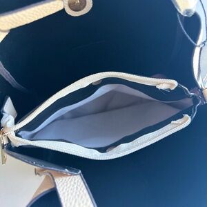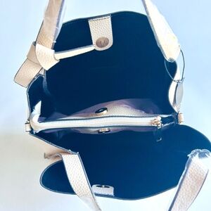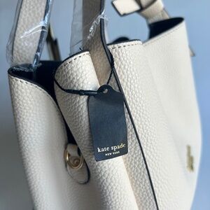 New Kate Spade Light Pink Faux Pebble Leather Small Tote. 9”W x 8”H x 4.5”D, handle drop 12”, shoulder strap, gold metal hardware, three compartments inside, magnetic snap closure. In excellent condition, new with tag.