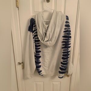 Whit with navy blue tie dye designed Free People hoodie. Terry cloth interior perfect for summer and at beach. super oversized size small but can fit both a medium and a large. very comfortable! rarely worn and in great condition