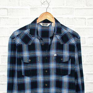 Salt Valley Men's Western Button up Flannel Shirt Blue Plaid Cotton Size Small