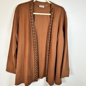 Susan Graver Women Chocolate Brown Open Front Cardigan with Chain Detail 18W