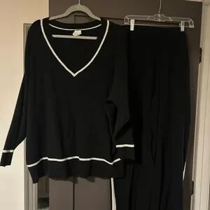 LIVI Mid V-Neck Contrast Matching Sweater & Pant Set | 22/24 | Black & White