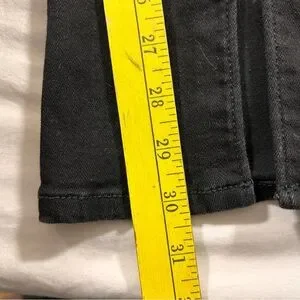 Stylish black jeans with a high-rise fit. Features a flared leg design. Slit design on the bottoms. worn once