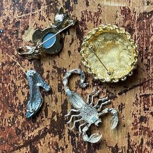 15 pieces. Vintage brooches, with or without pin backs; perfect for upcycling, crafting, or decorating your gifts with a little extra pizzaz. Enjoy!
