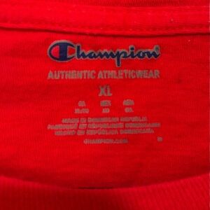 Vibrant red tee. Short sleeves. Classic Champion style. Worn only two times.