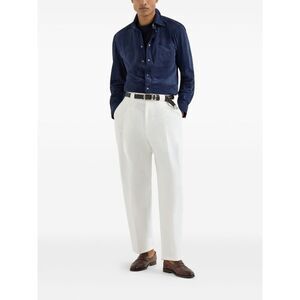 : blue suede texture chest pocket button fastening long sleeves point collar