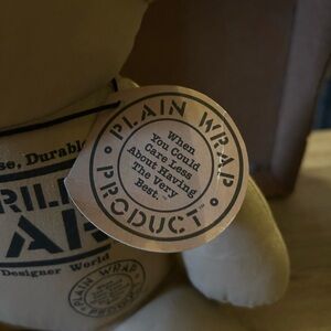 This 1985 Dakin No Frills Stuffed Bear is a vintage collectible toy that is approximately 10.5 inches in size. It comes with its original tags attached and is recommended for all ages. This classic bear plush is from the Dakin brand, making it a timeless piece for collectors or lovers of vintage toys. Perfect for both children and adults, this stuffed bear embodies nostalgia and charm with its simple design and high quality construction.