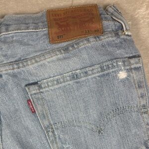 Levi’s Men’s Slim Fit Distressed 100% Cotton Zipper Fly Raw Hem Blue Jeans 33