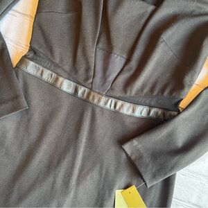 Wow! This is just a totally gorgeous black dress! Brand new with tags retails for 330+ tax. Such a versatile dress as far as occasion and aesthetic. It has mesh cut outs at the waist and shoulders, and it zips open in the back. Leather detail. See photos for exact measurements.