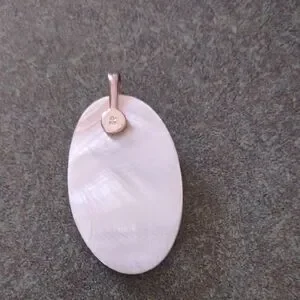 Discover the beauty of this iridescent abalone and mother of pearl pendant, perfect for any occasion. Its unique silver accent adds a touch of sophistication.