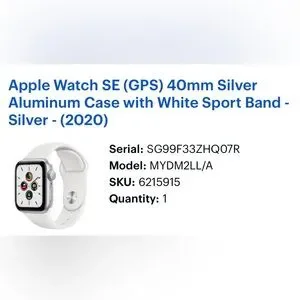 Apple Watch SE (GPS) 40mm Silver Aluminum Case with White Sport Band - Silver - (2020)