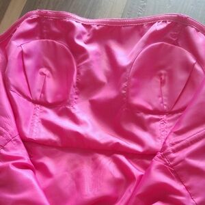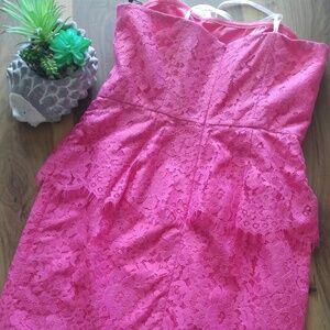 NWT Calvin Klein pink lace strapless peplum dress. Boning in bodice. Padding built into bust. See measurements in photo.