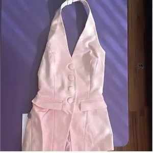 Chic blush halter top and matching button trouser pants. Ideal for stylish occasions.