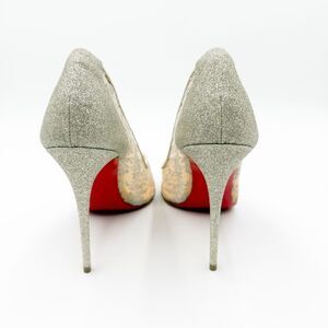Christian Louboutin Pigalle Follies Lace Silver Glitter Pumps Heels EU 39.5 US 9