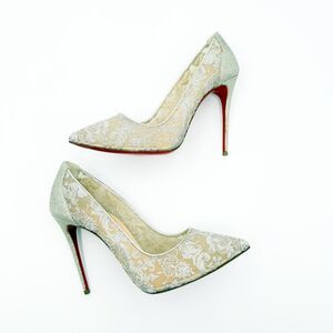 Authentic Christian Louboutin Pigalle Follies Lace Glitter Pumps