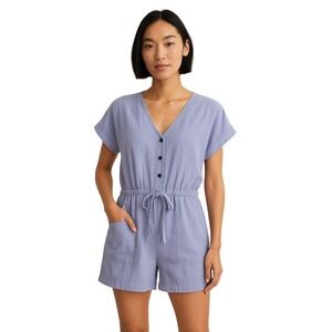 Upgrade your casual wardrobe with this Patagonia Women's Romper in Size M, designed for comfort and effortless everyday wear. This lightweight one-piece features a ligth blue color, a flattering V-neckline, button-front detail, and an adjustable drawstring waist for a customizable fit.