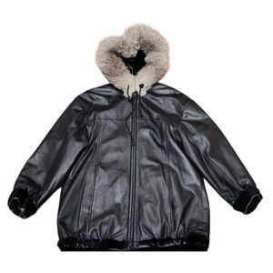 One side features ultra-soft, plush black sheared mink fur, while the reverse transforms into a sleek black leather jacket — two luxe looks in one.