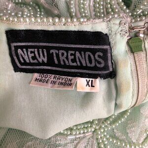 - Floral pattern beaded and sequined in tiny lime beads and white shiny rhinestones all over