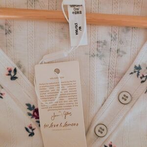 Charming pajama set with delicate floral design. Soft white fabric with pink and green flowers. Perfect for cozy nights.