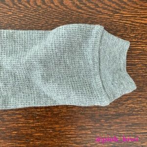 This Carter’s Christmas top is NWT! Red t-shirt with grey thermal-knit long sleeves. Faux layered look. Crewneck. Santa with sunglasses and thumbs up printed on front. Does seem to have a worn look or fuzz/pilling.