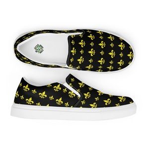 Black and Gold Fleur de Lis Slip On Canvas Shoes