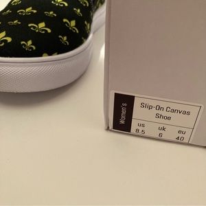 NIB Fleur de Lis Black Gold New Orleans Mardi Gras Women Slip On Shoes 8.5 RARE