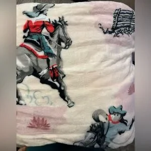 Cozy and stylish MIA blanket. Soft cream with pink accents. Ideal for any bedroom decor. For your cowgirl heart!