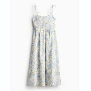H&M Tie-Shoulder-Strap Blue Floral Smocked Cotton Midi Dress NWT