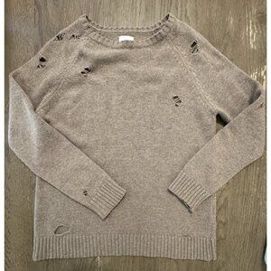 Anine Bing Wool Sweater Distressed Taupe Neutral Minimalist Quiet Luxury Small