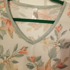 Flora Nikrooz Tiger Lily/Seafoam Green Polka-Dot Soft Pajamas. Size: Women's Medium.