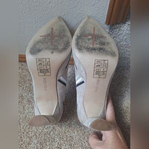 Nic + Zoe Vida Gray Suede Pointed Toe Pump Embroidred Geometric Size 7M Heel height 3.5" measurements are approximate