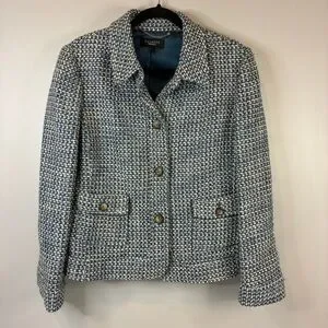 Classic Talbots Teal Tweed Wool-Blend Blazer — Size 14